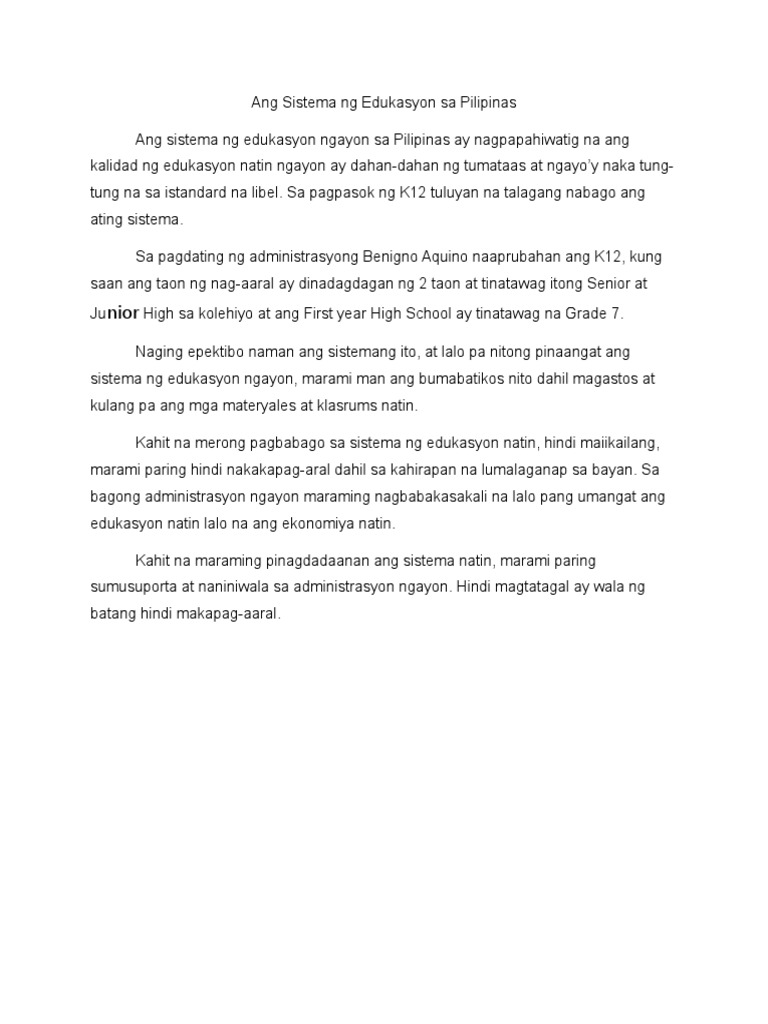 Ang Sistema Ng Edukasyon Sa Pilipinas Docx