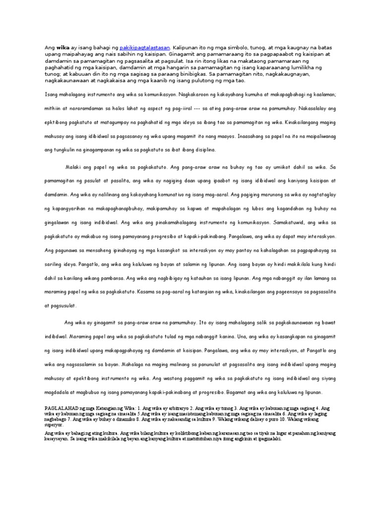 Ang Wika Ay Isang Bahagi Ng Pakikipagtalastasan