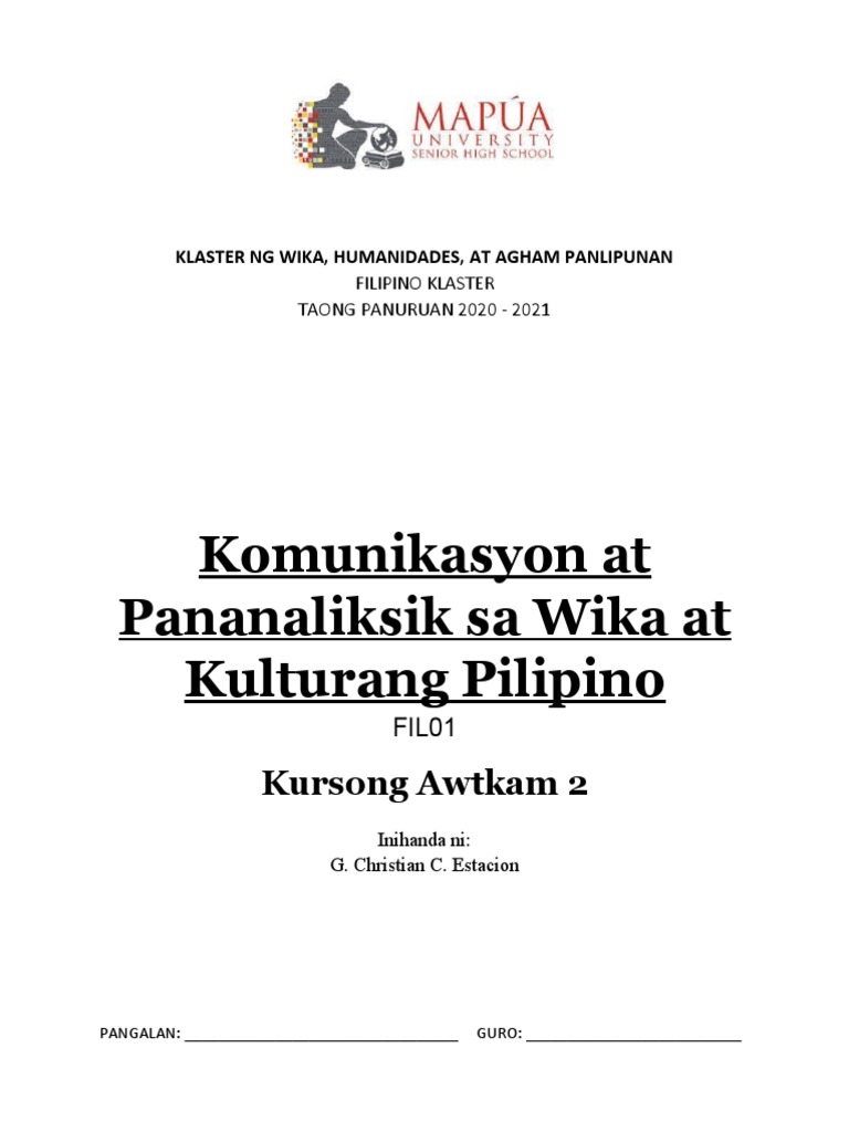 K to 12 BASIC EDUCATION CURRICULUM SENIOR HIGH SCHOOL CORE SUBJECT K to 12 Core Curriculum Komunikasyon at Pananaliksik sa Wika at Kulturang Pilipino Disyembre 2013 Pahina 5 ng 8. Ang na nag-aatas na lahat ng letterhead ng mga tanggapan kagawaran at sangay ng pamahalaan ay dapat na nakasulat sa Pilipino at may katumbas na Ingles sa ilalim nito. Katangian ng Gender.